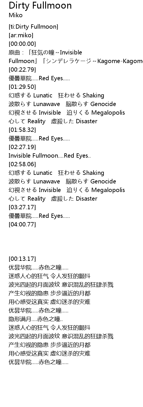 | [02:30.43] | Invisible Fullmoon....Red Eyes.. |