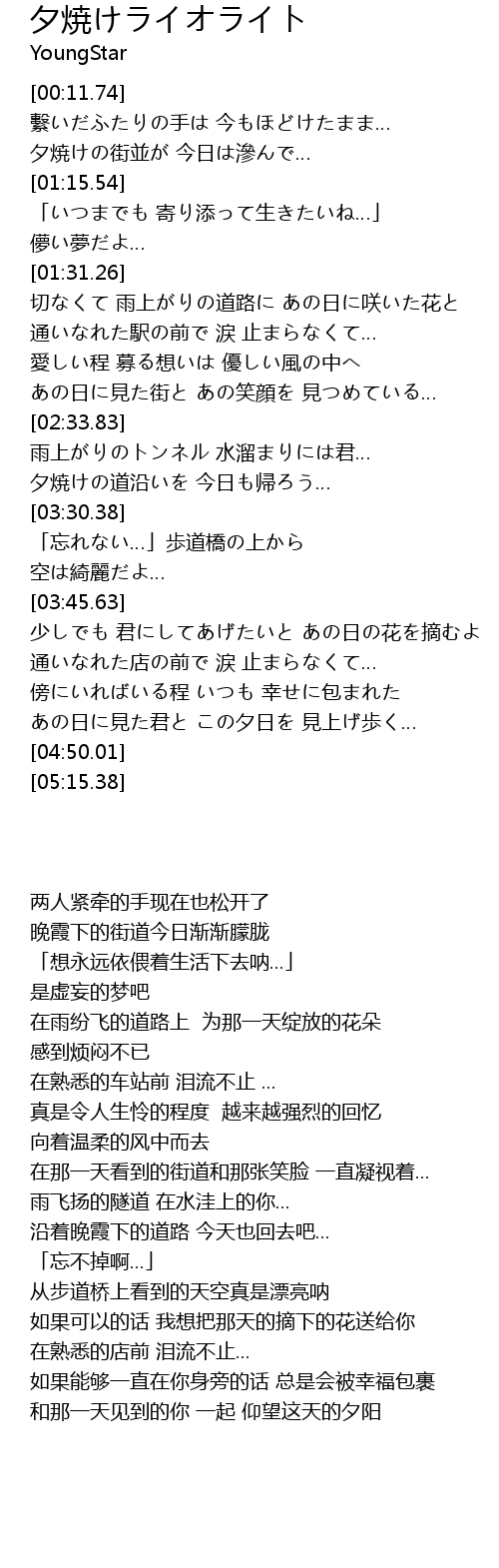 | [03:15.57] | 夕焼けの道沿いを 今日も帰ろう… |