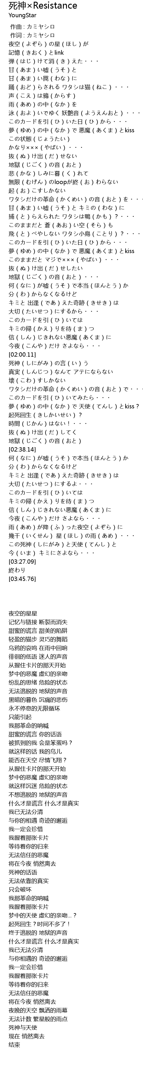 | [03:20.32] | この死神(しにがみ)と天使(てんし)と |