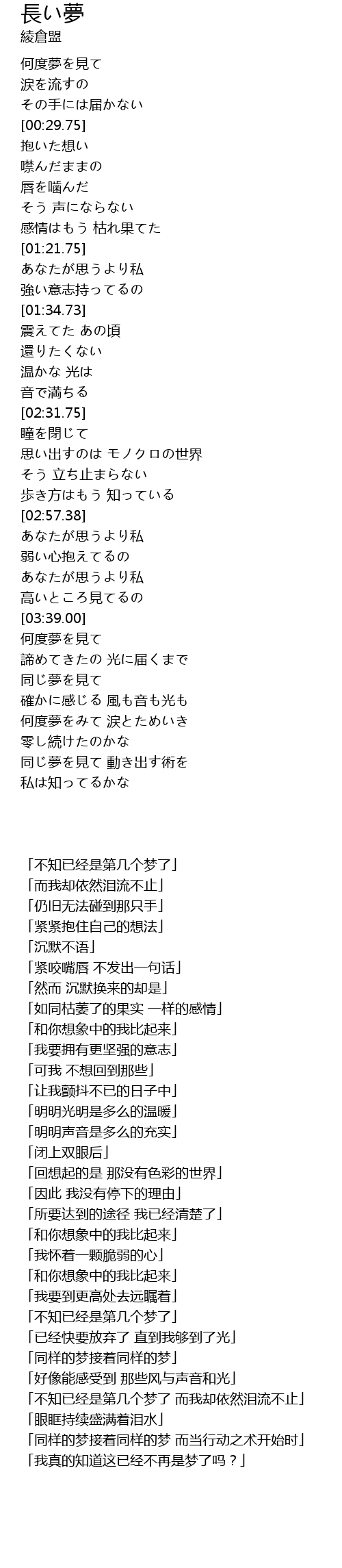 | [03:58.75] | 何度夢をみて 涙とためいき |