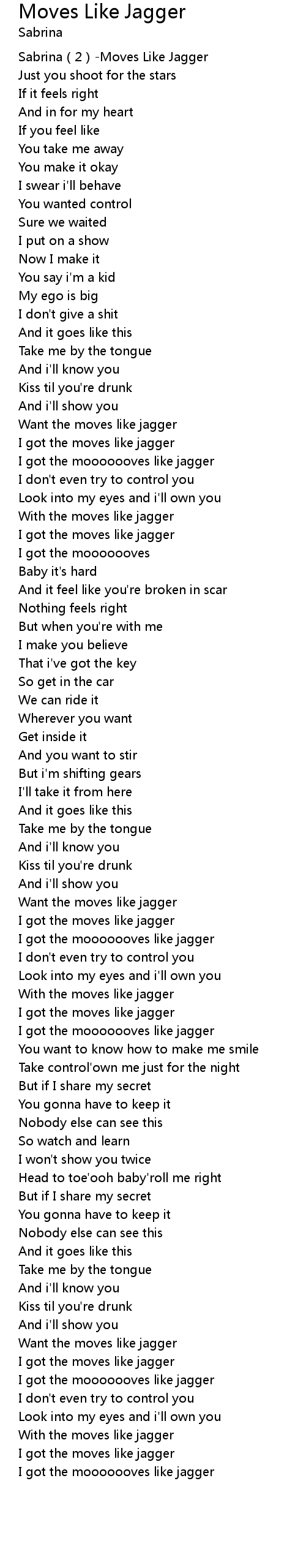 | [00:00.264] | Sabrina 2 Moves Like Jagger |