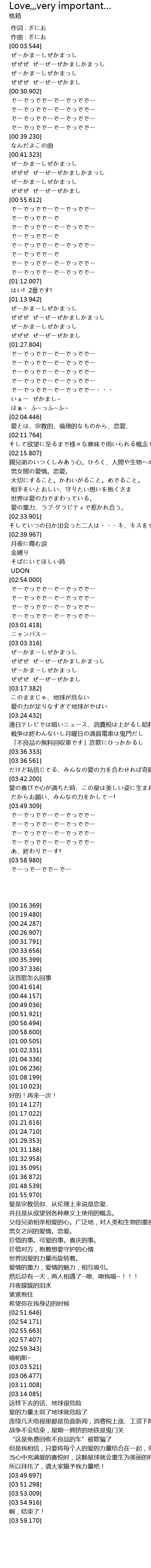 | [03:20.969] | 愛の力が足りなすぎて地球がやばい |