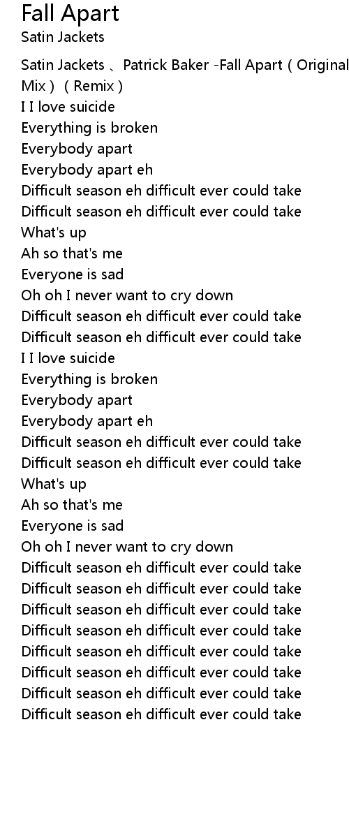 | [00:00.111] | Satin Jackets Patrick Baker Fall Apart Original Mix Remix |