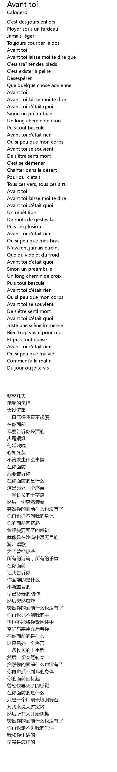 | [00:22.47] | Avant toi laisse moi te dire que |