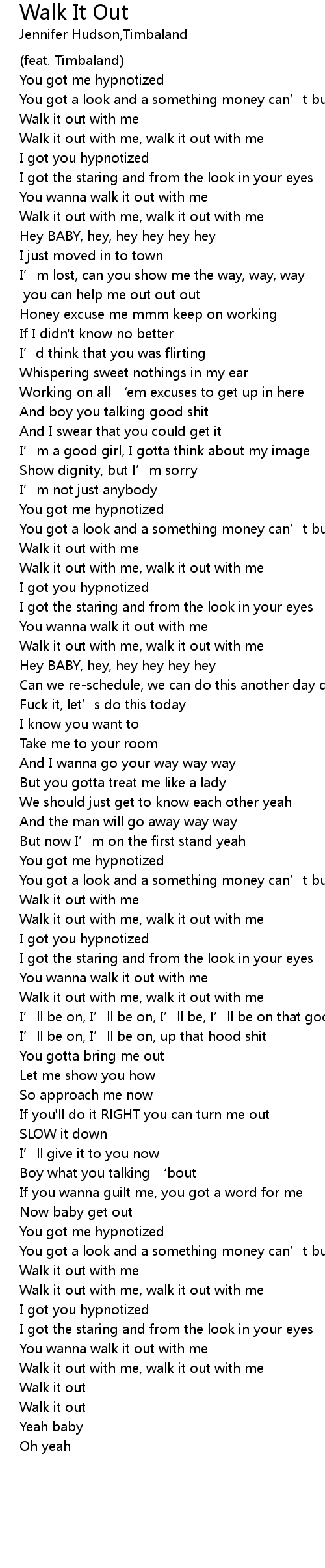 | Walk it out with me, walk it out with me | |