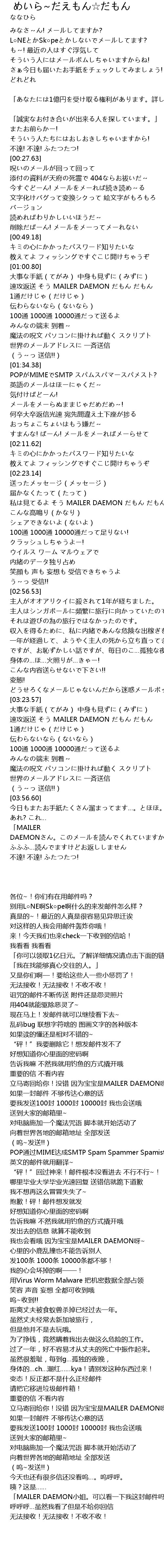 | [01:06.08] | 速攻返送 そう MAILER DAEMON だもん だもん |