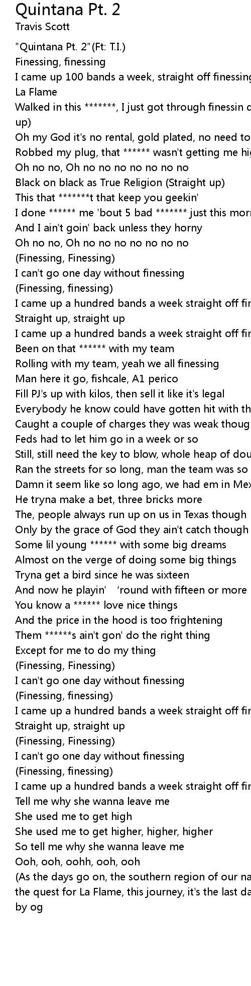 | [00:00.00] | " Quintana Pt. 2" Ft: T. I. |