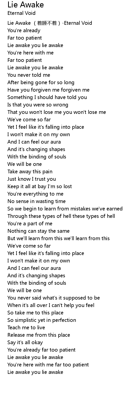 | [00:00.00] | Lie Awake zhe shuì bù zháo Eternal Void |