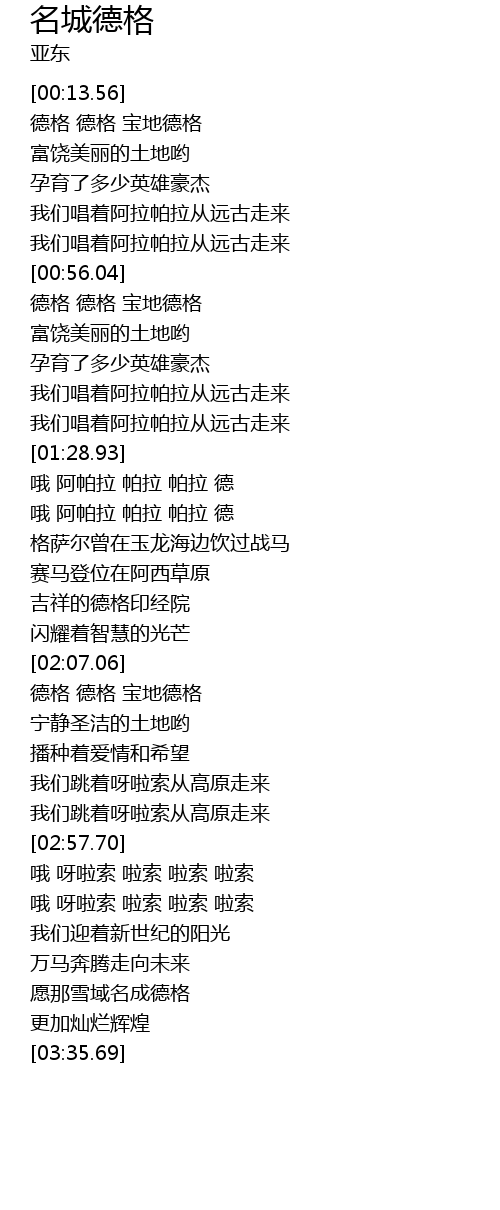 | [00:57.23] | 德格 德格 宝地德格 |
