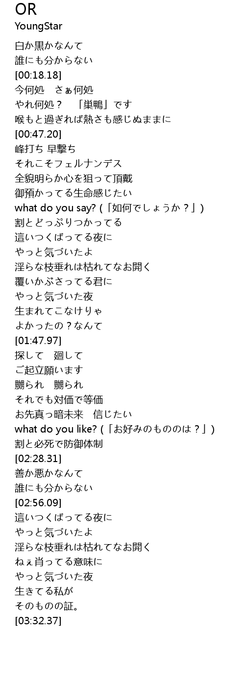 | [03:14.27] | ねぇ肖ってる意味に |