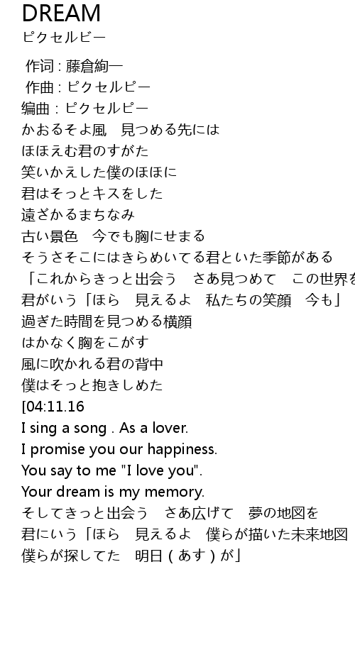 | [03:40.82] | 君にいう「ほら 見えるよ 僕らが描いた未来地図 |