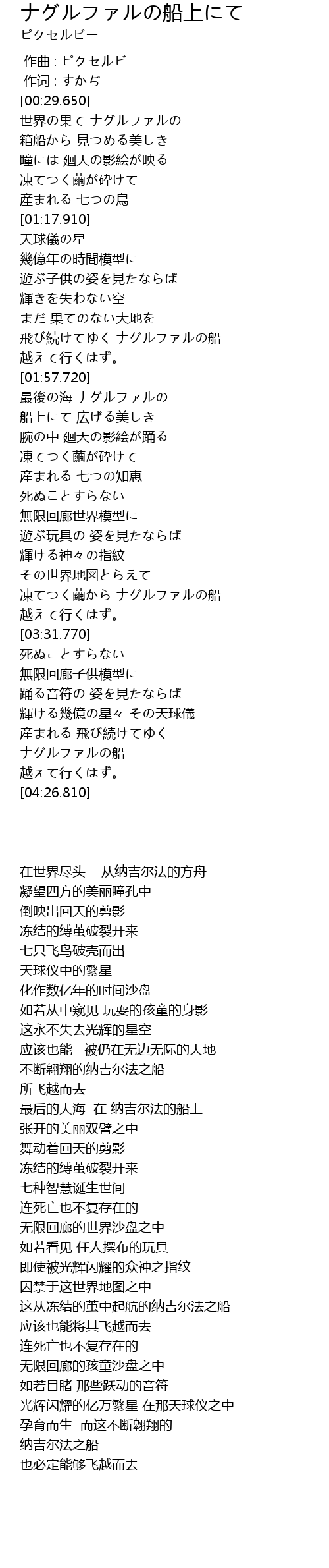 | [01:45.640] | 飛び続けてゆく ナグルファルの船 |