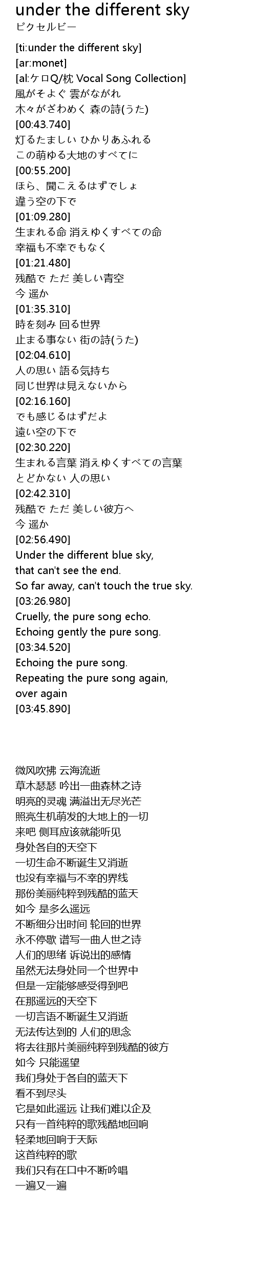 | [03:21.930] | So far away, can' t touch the true sky. |
