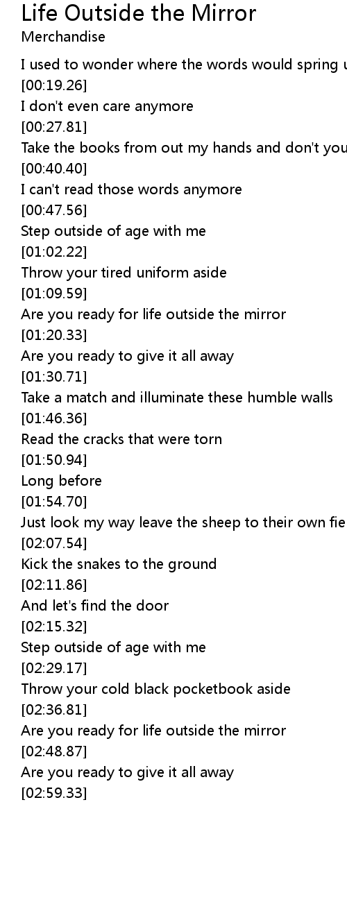 Are you ready for life outside the mirror |