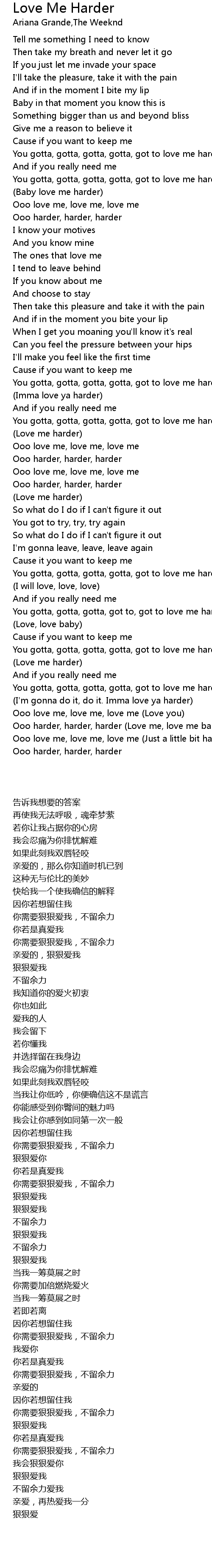 You gotta, gotta, gotta, gotta, got to love me harder |