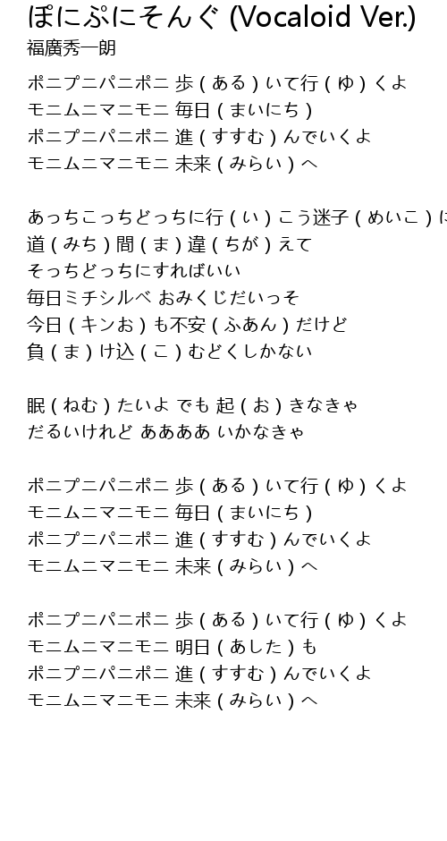 | Song | ぽにぷにそんぐ (Vocaloid Ver.) |