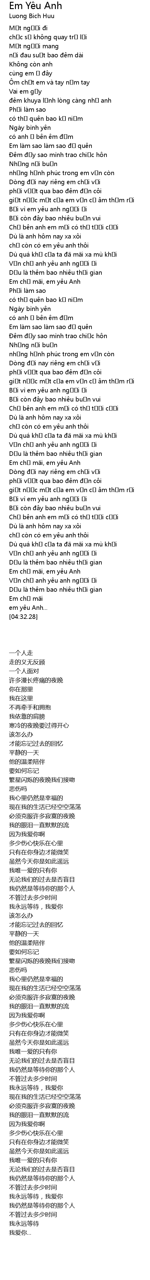 | [04:12.24] | Em chờ mãi, em yêu Anh |