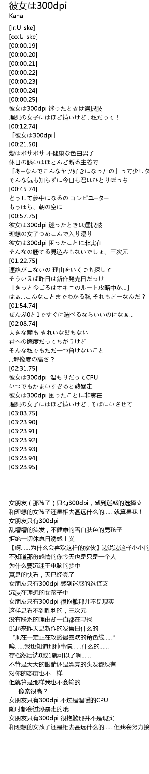 | [01:09.75] | 彼女は300dpi 困ったことに非実在 |