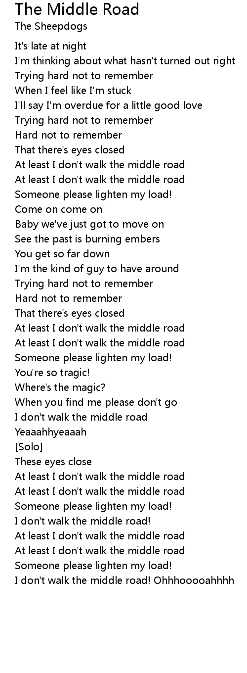 I don't walk the middle road! Ohhhooooahhhh |