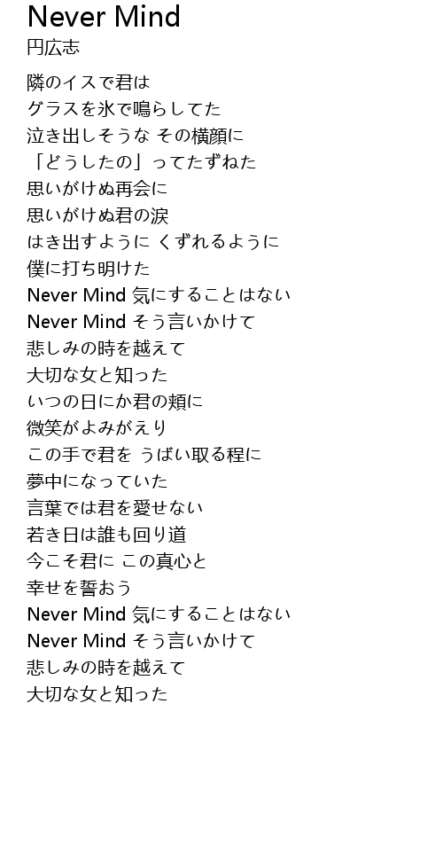 Never Mind 気にすることはない |