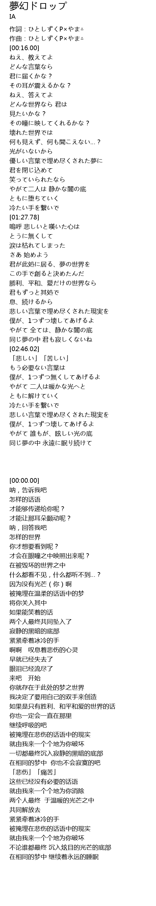 | [00:00.00] | 作詞:ひとしずくP×やま△ |