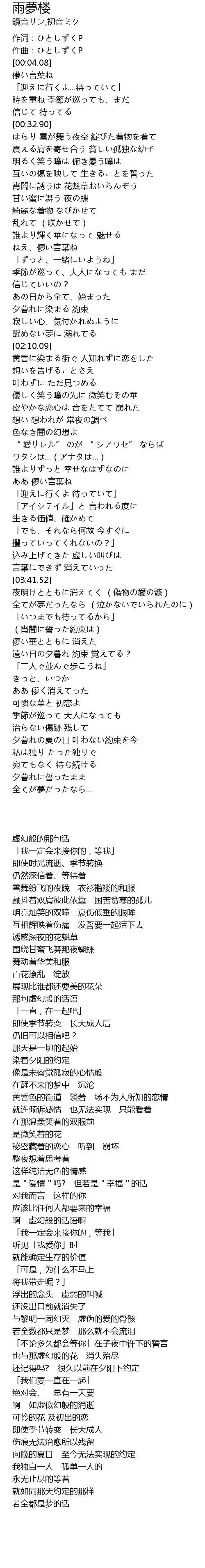 | [03:56.01] | 「いつまでも待ってるから」 (宵闇に誓った約束は) |