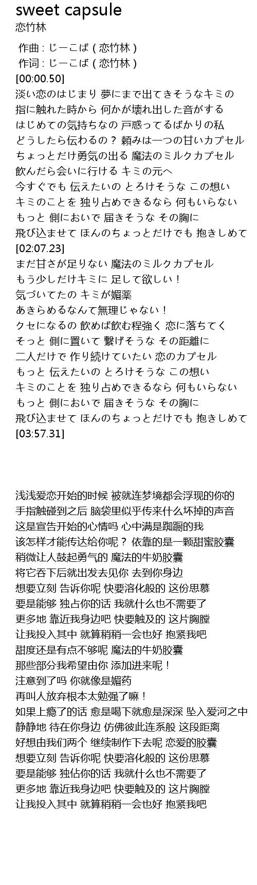| [03:06.55] | 二人だけで 作り続けていたい 恋のカプセル |