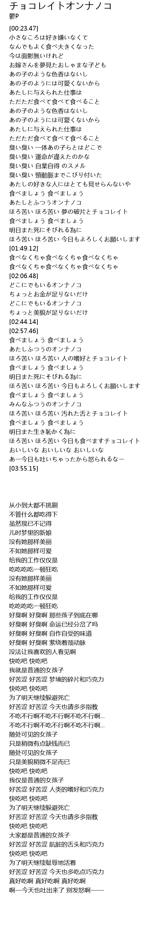 | [03:35.13] | ほろ苦い ほろ苦い 今日も食べますチョコレイト |