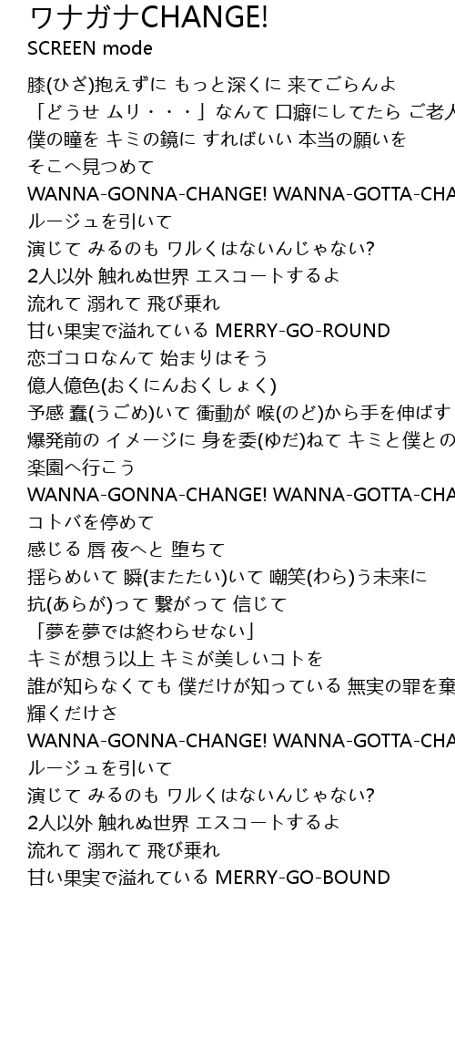 | WANNA-GONNA-CHANGE! WANNA-GOTTA-CHANGE! | |