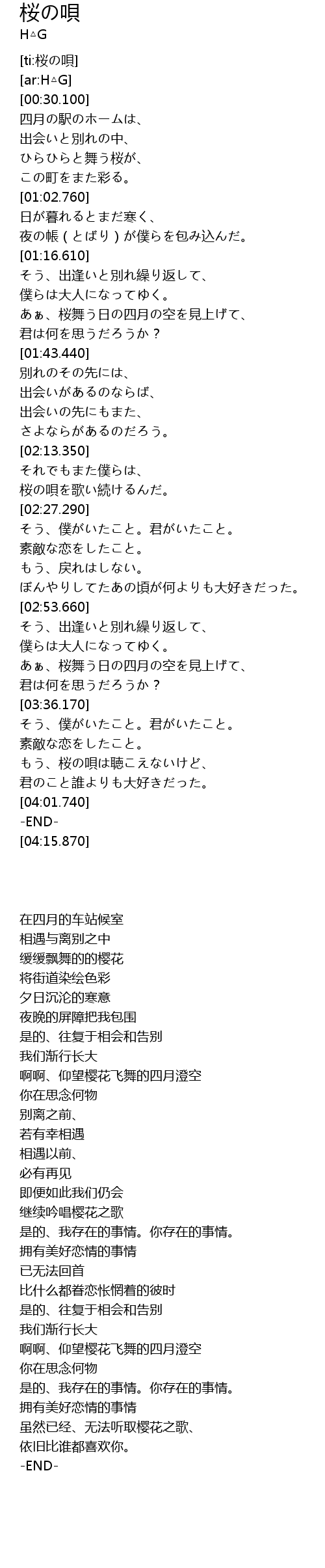| [02:19.250] | 桜の唄を歌い続けるんだ。 |