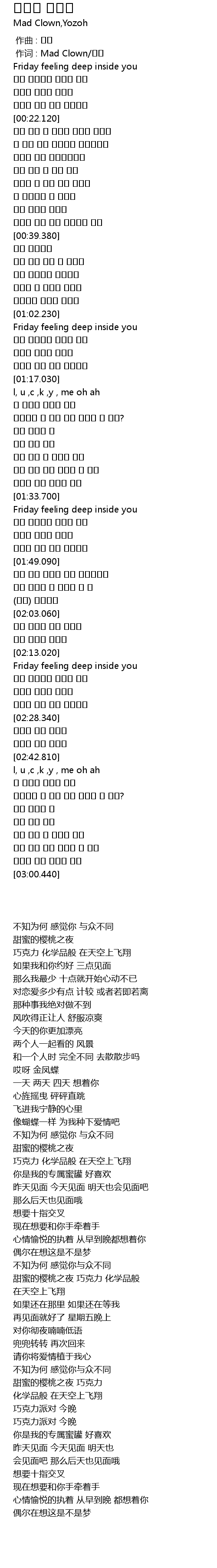 | [00:01.00] | 作词 : Mad Clown/몬구 |