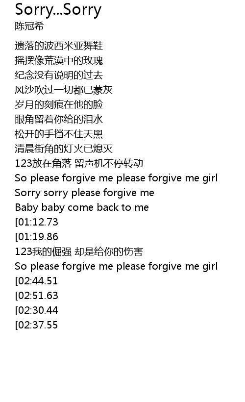 | [03:12.95][02:44.51][02:16.26] | Sorry sorry please forgive me girl |
