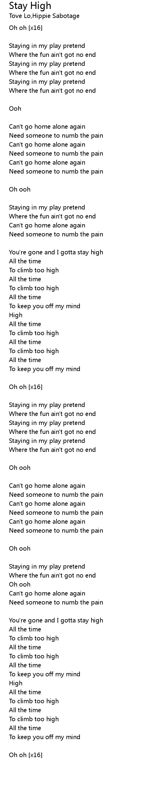 You're gone and I gotta stay high |