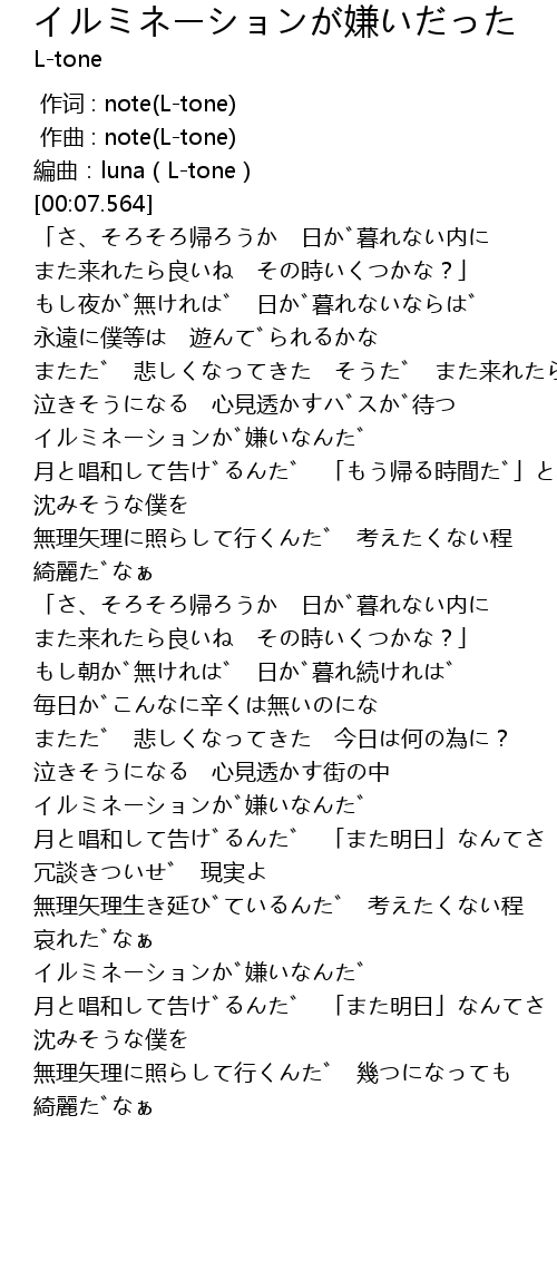 | [00:56.199] | イルミネーションが嫌いなんだ |