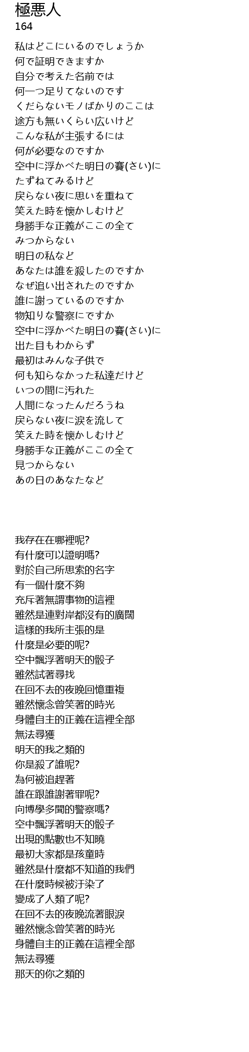 | Song | 極悪人 |