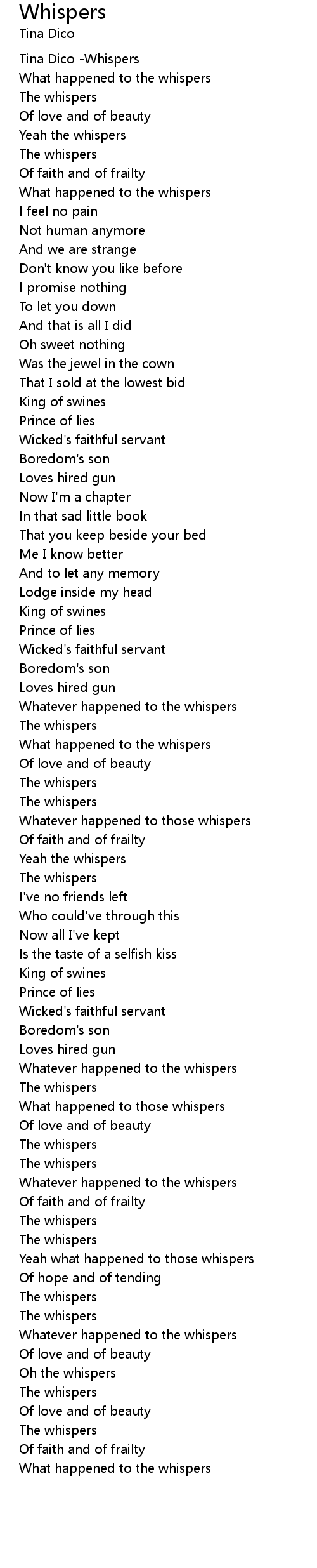 | [02:00.542] | What happened to the whispers |