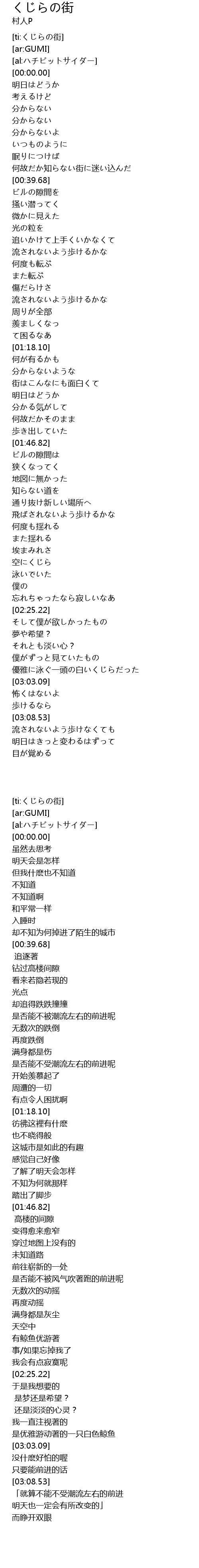 [ti:くじらの街] |