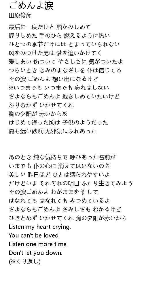 | その涙ごめんよ わがままを 许して | |