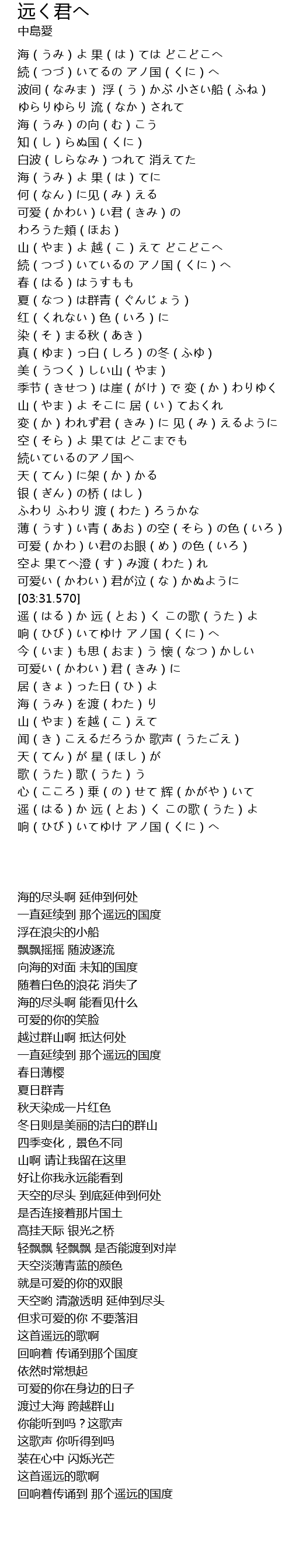 | [04:05.350] | 遥(はる)か 远(とお)く この歌(うた)よ |