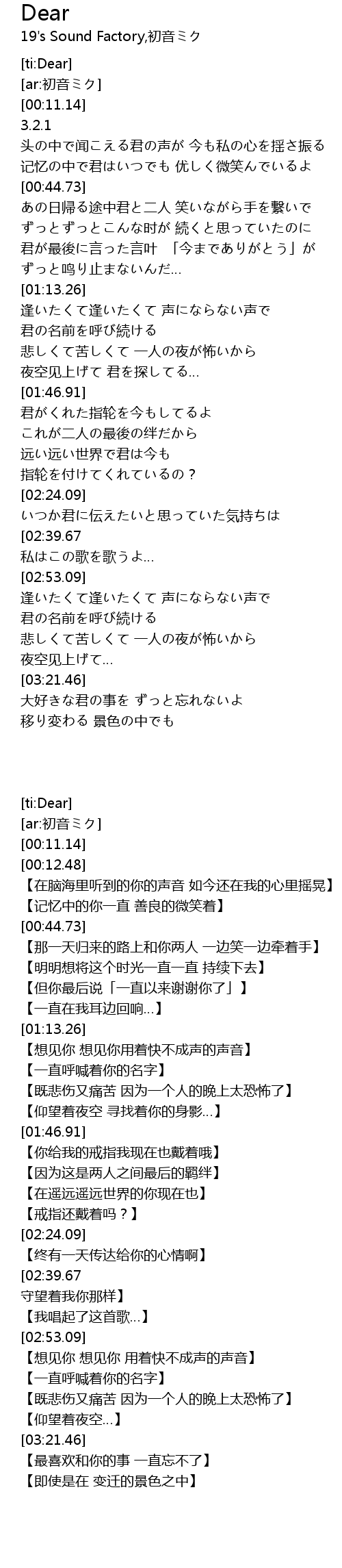 | [03:21.53] | 大好きな君の事を ずっと忘れないよ |