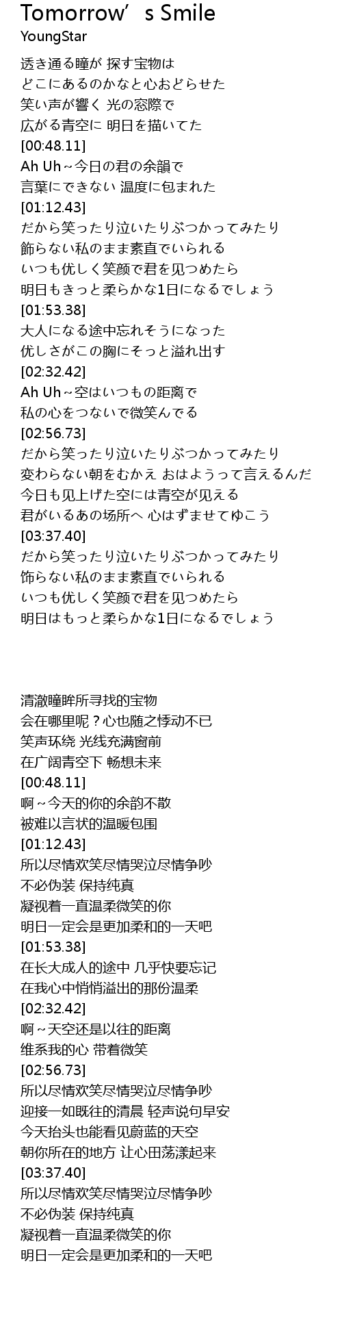 | [01:43.45] | 明日もきっと柔らかな1日になるでしょう |
