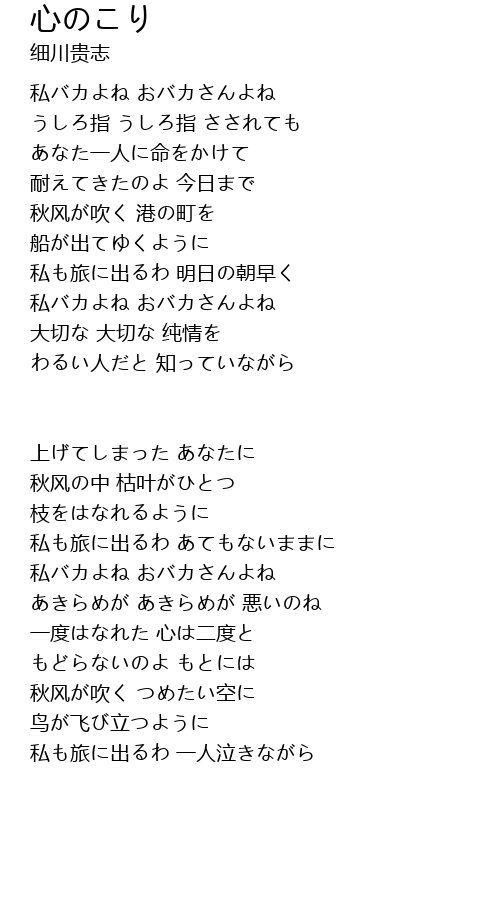 | Song | 心のこり |