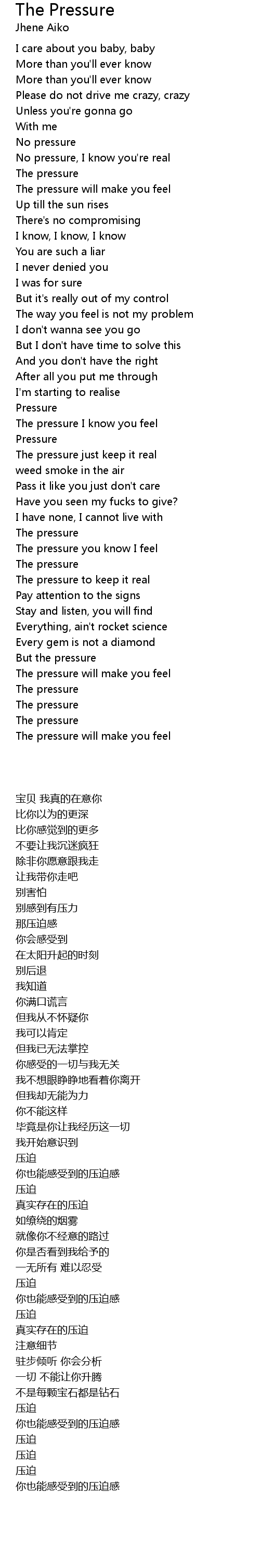 The pressure you know I feel |