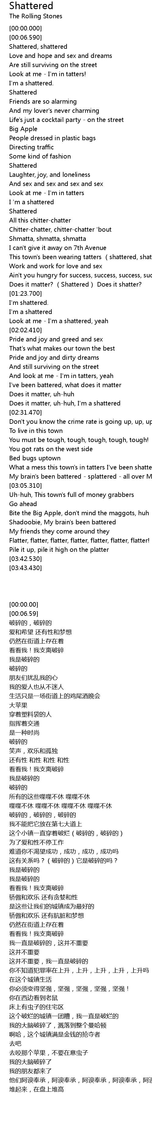 | [01:15.000] | Does it matter? (Shattered) Does it shatter? |