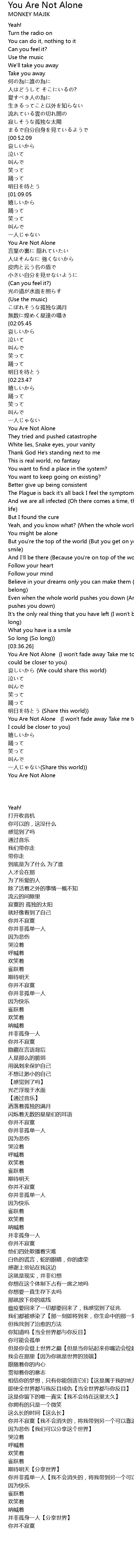 | [00:55.95][00:52.09] | You Are Not Alone |