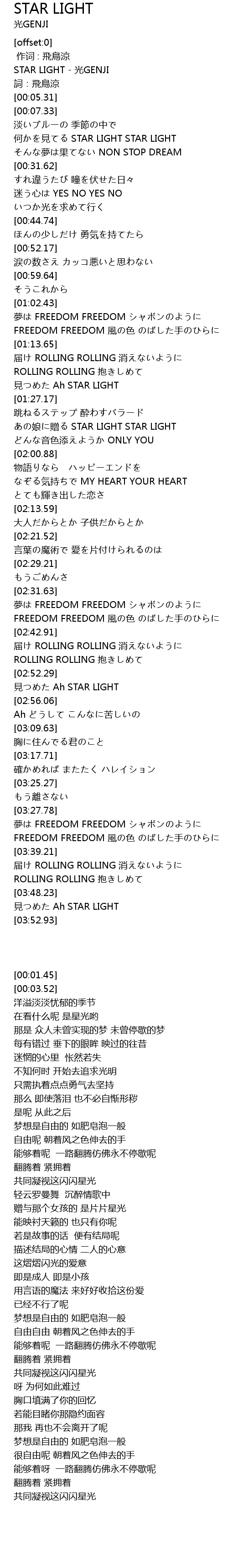 | [00:01.45] | STAR LIGHT guāng GENJI |
