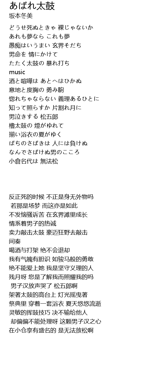 | [01:19.44] | たたく太鼓の 暴れ打ち |