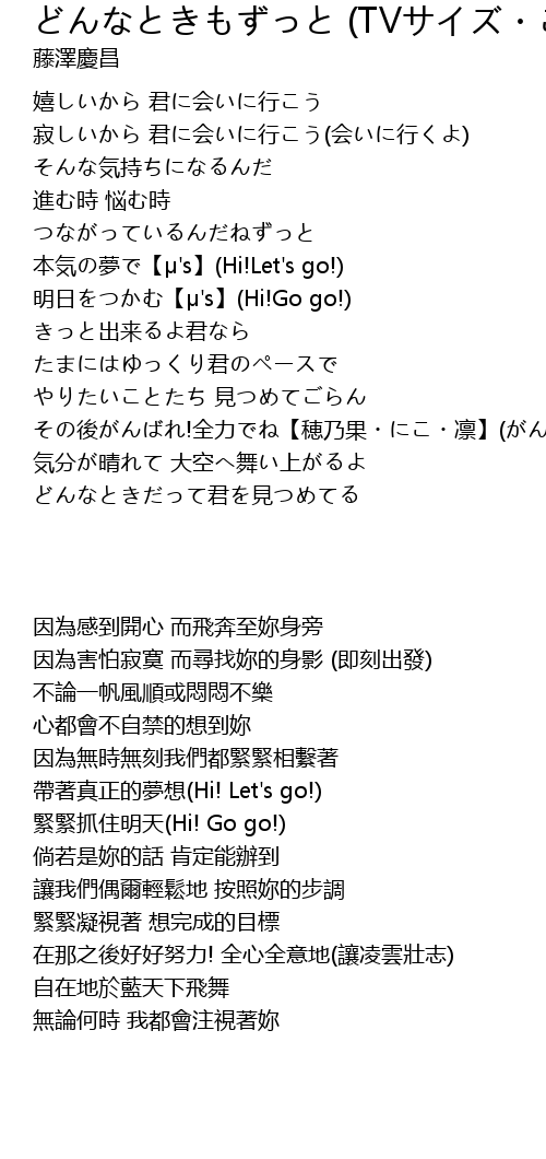 | [01:01.400] | その後がんばれ!全力でね【穂乃果・にこ・凛】(がんばろうよ) |