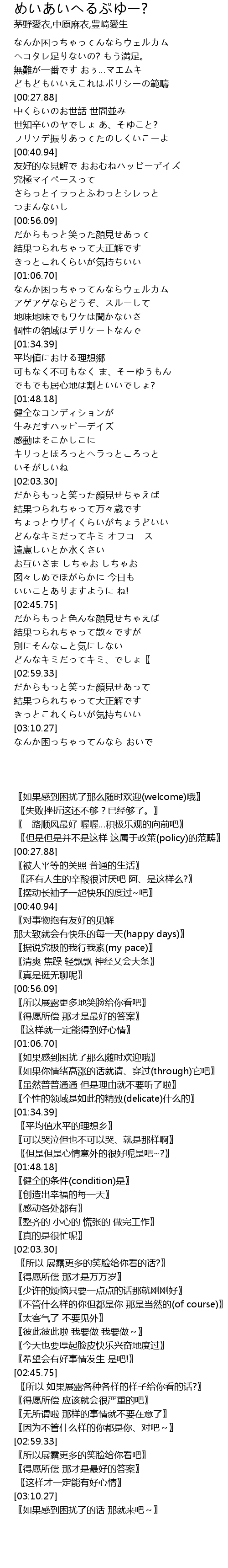 | [00:41.99] | 友好的な見解で おおむねハッピーデイズ |