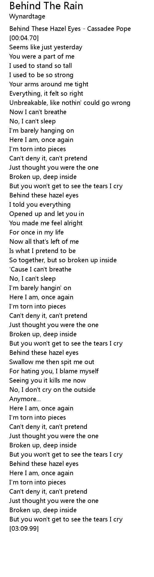 [00:01.05] Behind These Hazel Eyes - Cassadee Pope